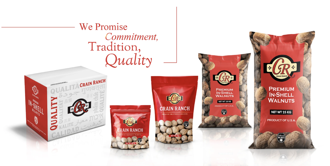 Đặc biệt, tất cả quả óc chó Crain sau khi thu hoạch đều được hấp hơi khử trùng để diệt khuẩn theo đúng tiêu chuẩn USDA trước khi đóng gói. Vỏ quả được chà rửa sạch đến mức “produce-grade” (tiêu chuẩn nông sản cao cấp), giúp hạt óc chó có lớp vỏ sáng đẹp tự nhiên. Chính lớp vỏ sạch và an toàn này đã tạo nên tiếng tăm cho bao bì mang logo “CR” (Crain Ranch) trên thị trường quốc tế về chất lượng.